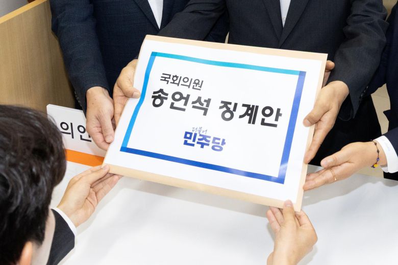 민주당 법률위원장을 맡고 있는 이성윤 의원과 임호선 수석사무부총장, 문정복 조직부총장은 이날 국회 의안과에 송 원내대표 징계안을 제출했다. 이 의원은 징계안을 제출하며 “송 원내대표에 대한 강력한 징계와 국회의원 제명까지 밀고 나가겠다”고 강조했다.