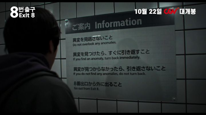 함께 공개된 런칭 예고편은 끝없이 반복되는 지하도에 갇힌 '헤매는 남자'(니노미야 카즈나리)를 중심으로 전개되며 예비 관객들의 시선을 사로잡는다. 빠져나올 수 없는 지하도에서 "이상 현상 놓치지 말 것", "이상 현상 발견하면 즉시 되돌아갈 것", "8번 출구 통해서 밖으로 나갈 것"과 같은 규칙을 부여 받은 '헤매는 남자'는 알 수 없는 현상과 기이한 인물들을 마주하며 서서히 미스터리에 휘말린다.