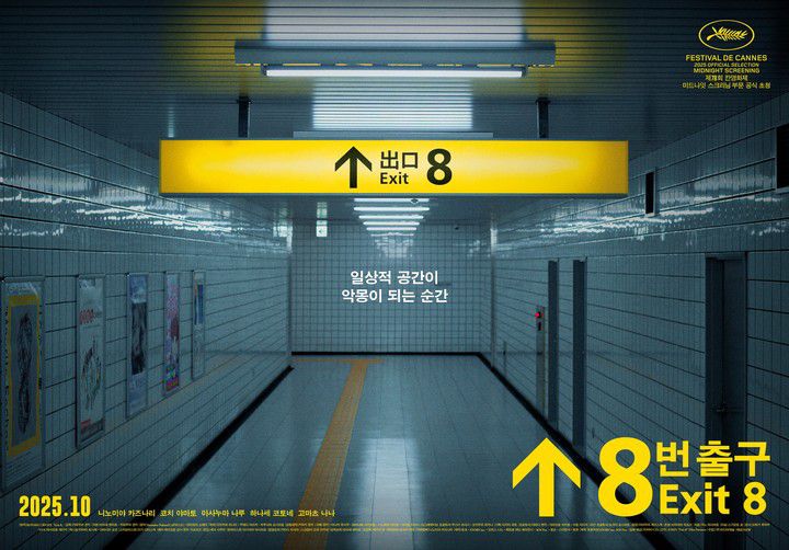 '8번 출구'는 무한루프의 지하도에 갇혀 8번 출구를 찾아 헤매는 남자가 반복되는 통로 속 이상 현상을 찾아 탈출하는 이야기다. 전 세계 누적 다운로드 150만 회를 기록한 동명의 게임을 원작으로 한다.
