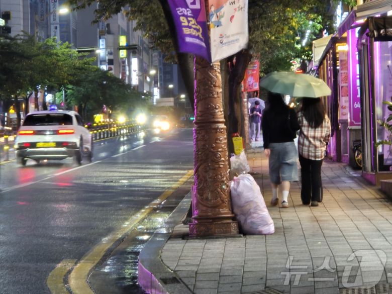 이날 오후 8시쯤 강릉 교동 일대. 잔뜩 흐려진 날씨에 모처럼 비가 내리자, 시민들이 우산을 쓰고 발걸음을 옮기고 있었다. 미처 우산을 준비하지 못한 일부 시민들은 겉옷으로 비를 피하며 이동하기도 했다.