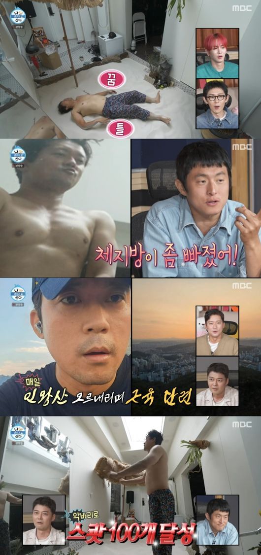 김대호는 상의를 벗고 휴식을 취하기도 잠시, 그 자리에서 스쾃 100개 달성 후 푸쉬업까지 도전해 눈길을 끌었다.