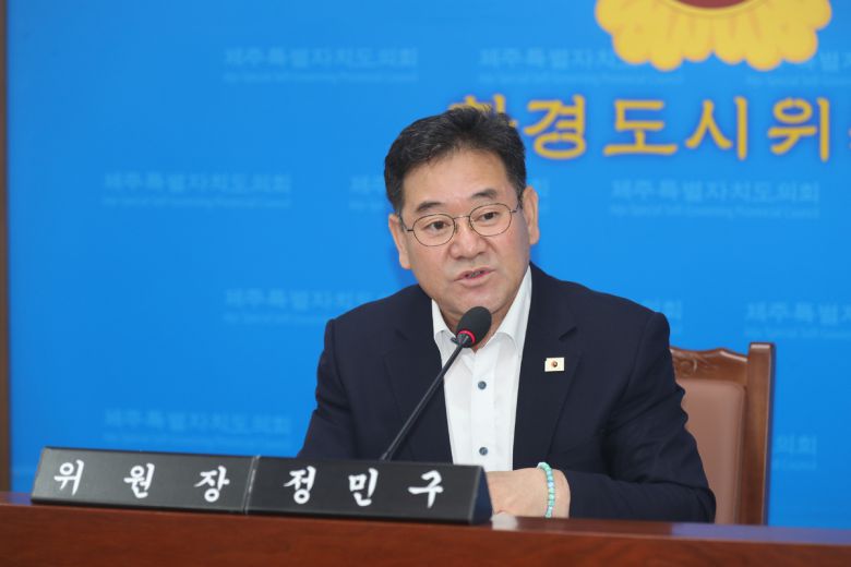 12일 열린 제주도회 환경도시위원회 제442회 임시회 제1차 회의에서 정민구 위원장이 발언하고 있다. 제주도의회 제공 |