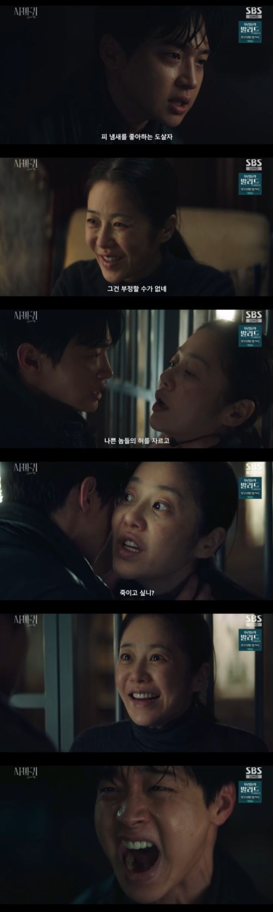 충격에 휩싸인 차수열의 얼굴을 자신의 얼굴을 가져다대면서 정이신은 "내가 밉니? 끔찍해? 죽이고 싶지? 나만 없어지면 너도 편할텐데. 죽여봐. 죽여버려 봐. 내가 혐오스럽지? 죽여. 여기서 죽여. 엄마가 살아있는게 너무 골치 아프잖아. 우리 아들"이라면서 차수열의 손으로 자신의 목을 졸라 소름을 유발했다.