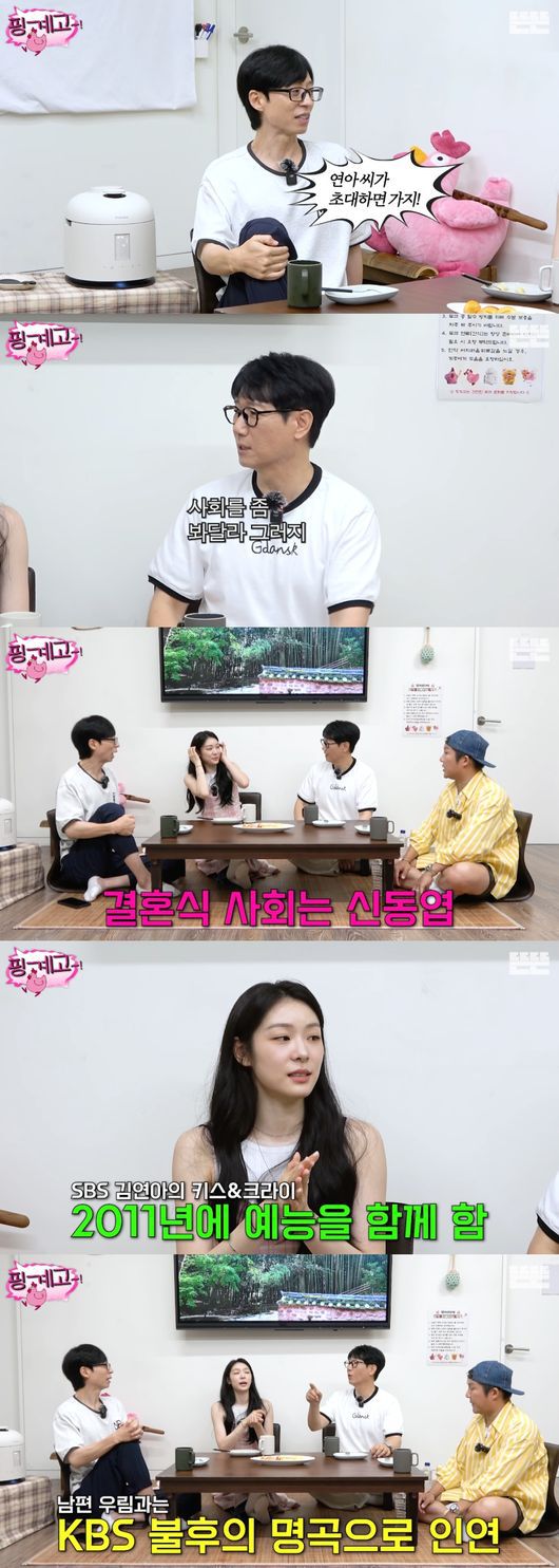 그러나 정작 유재석은 김연아와 고우림의 결혼식에 초대받지 못했다. 이에 김연아가 민망해 하며 웃자, 지석진이 "사회 봐달라고 하지 그랬나"라고 거들었다.