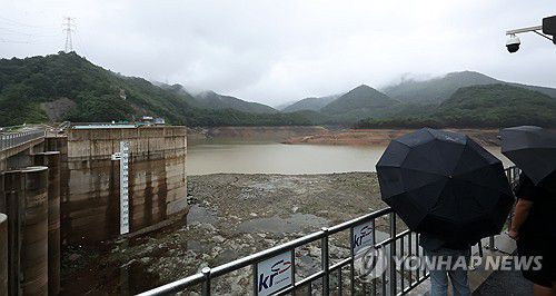 (강릉=연합뉴스) 유형재 기자 = 강원 강릉지역에 최악 가뭄이 이어지고 있는 가운데 13일 오후 강릉지역 생활용수의 87%를 공급하는 상수원 오봉저수지 일원에 단비가 내리고 있다. 2025.9.13