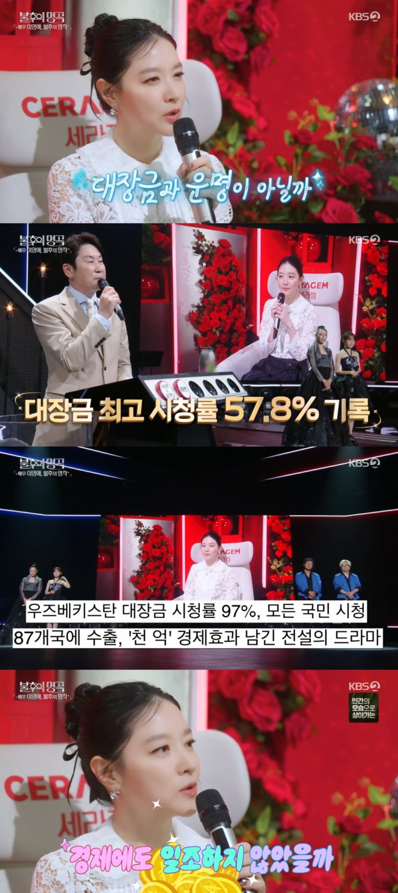 이영애가 주연으로 활약했던 ‘대장금’은 방영 당시 57.8%의 시청률을 기록하며 큰 사랑을 받았다. 특히 87개국에 수출되며 우즈베키스탄에서는 97% 시청률을 기록하기도 했다.