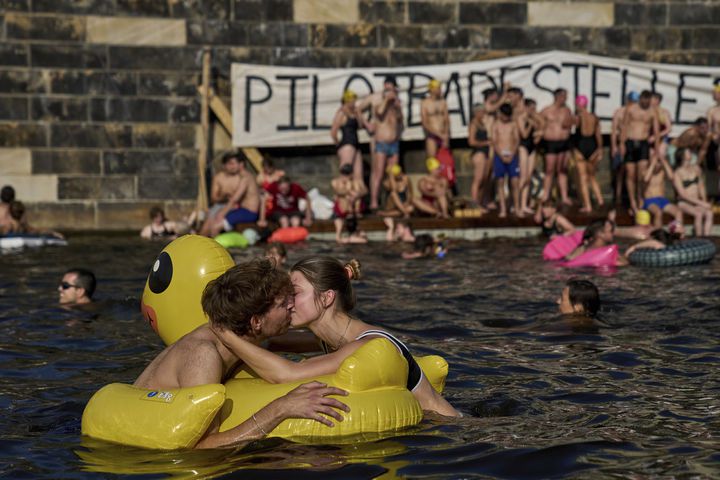 [베를린=AP/뉴시스] 12일(현지 시간) 독일 베를린에서 시민들이 슈프레강 수영 금지 해제를 촉구하며 강에서 수영하고 있다. 슈프레강은 수질 오염에 따른 보건 위험으로 100년 넘게 수영이 금지됐다. 시민 단체 등은 슈프레강이 수영할 만큼 수질이 개선됐다면서 수영 허용을 촉구하고 있다. 2025.06.18. |