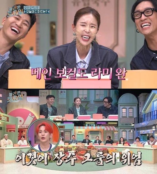 13일 방송된 tvN '놀라운 토요일'(이하 '놀토')에는 그룹 코요태의 김종민, 신지, 빽가가 출연했다.