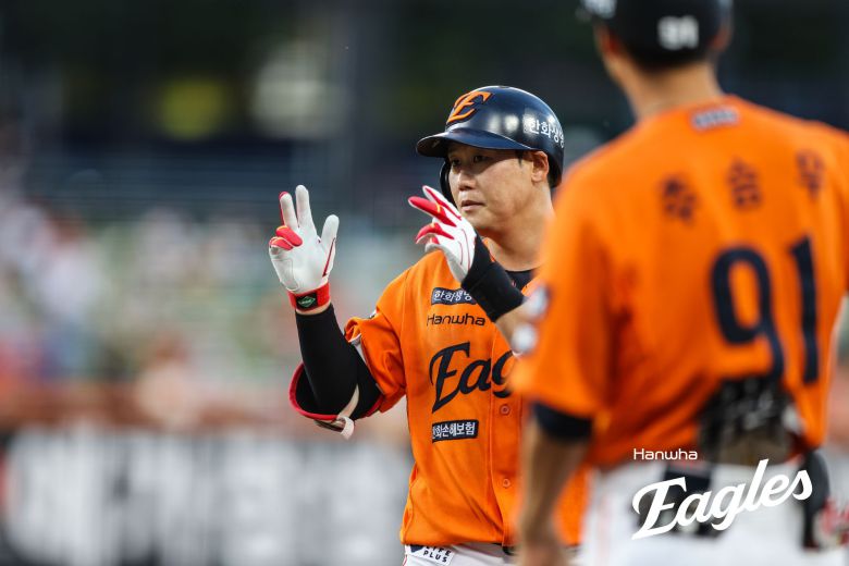 김경문 감독이 이끄는 2위 한화는 13일 대전 한화생명볼파크에서 열린 2025 신한 SOL Bank KBO리그 키움 히어로즈와의 팀 간 14차전에서 10-5로 이겼다. 연승 숫자를 '3'까지 늘리고 1위 LG 트윈스를 2.5경기 차로 추격했다.