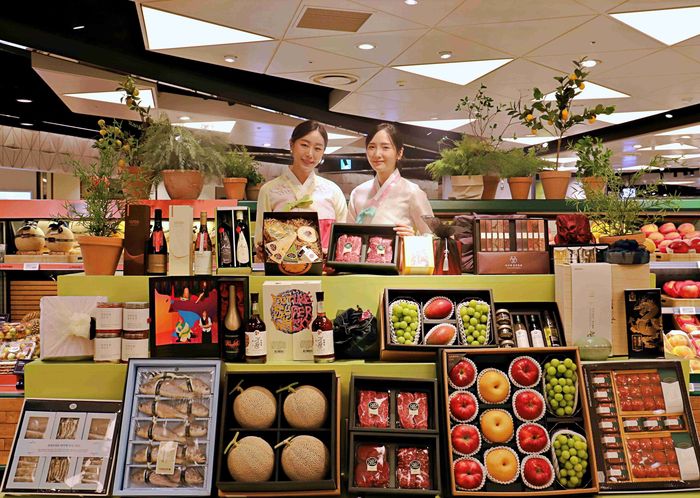 청과에서는 ‘엘프르미에 프리미엄 컬렉션 샤인 혼합’(25~27만원)이 대표적이다.대표 과일 사과·배를 중심으로 ‘홍로사과’ ‘황금사과’ ‘신고배’ 등에 샤인머스캣을 더해 50세트 한정으로 판매한다. 수산에서는 ‘제주전통 옥돔·은갈치’(65만원), ‘임페리얼 캐비아’(40만원) 등도 있다.