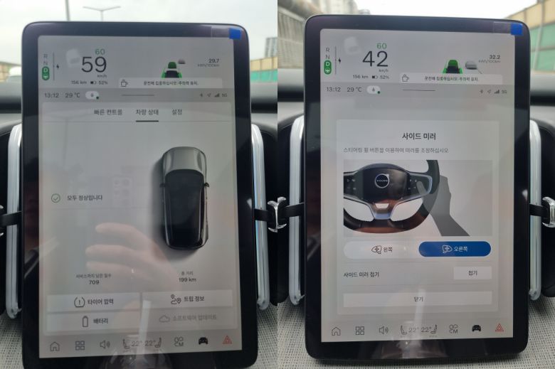 볼보의 안전 철학은 이번에도 견고했다. 운전대 상단에 IR 센서가 운전자의 시선을 감지해 졸음이나 주의 산만을 즉각 경고하고 문 열림 경보 시스템은 보행자와 자전거 접근 시 사고를 예방한다. 5개 레이더, 5개 카메라, 12개 초음파 센서가 결합된 첨단 안전 시스템은 차세대 파일럿 어시스트, 사각지대 경보 및 조향 어시스트, 도로 이탈 방지, 후방 교차 경고, 자동 주차 보조까지 지원한다. 안전 기술 전반이 플래그십 모델 수준으로 적용됐다.