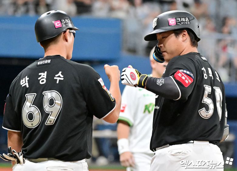 장성우가 포수 마스크를 쓰면서 강백호가 지명타자로 선발 명단에 포함됐다. 강백호는 최근 10경기에서 타율 0.421(19타수 8안타) 1홈런으로 뜨거운 방망이를 뽐냈다. 장성우도 마찬가지 최근 10경기 타율 0.387(31타수 12안타) 5홈런 9타점으로 페이스가 매우 좋다.