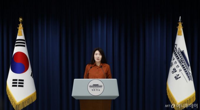 [서울=뉴시스] 최동준 기자 = 강유정 대변인이 14일 서울 용산 대통령실 청사에서 현안 관련 브리핑을 하고 있다. 2025.09.14. photocdj@newsis.com /사진=최동준