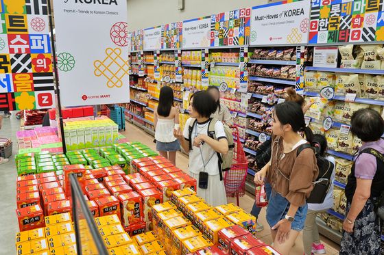 롯데마트 제타플렉스 서울역점을 찾은 외국인 관광객들. 사진 롯데마트 |