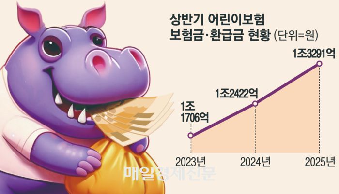14일 보험개발원에 따르면 올해 상반기 국내 손해보험사는 어린이보험(원리금보장형장기손해보험 기준) 보험금과 환급금으로 1조3291억원을 지출했다. 이는 전년 동기 대비 7% 늘어나고, 2023년 상반기 1조1706억원에 비해서는 13.5% 증가한 것이다. 성인 보험까지 포함한 개인 보험 전체에서 지급된 보험금이 2년 사이 9% 신장했다는 점을 봤을 때, 어린이보험의 증가 속도가 1.5배 빠른 셈이다.