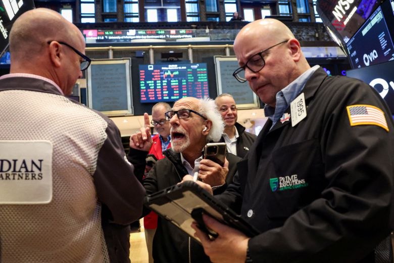 뉴욕증권거래소(NYSE)에서 12일(현지시간) 트레이더들이 대화하고 있다. 뉴욕/로이터연합뉴스 |
