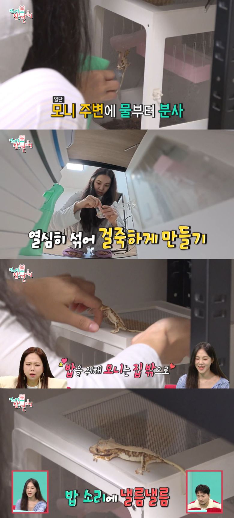 이날 방송에서는 그가 반려 도마뱀으로 데리고 있는 크레스티드게코(볏도마뱀붙이) 모니의 모습도 공개됐다.