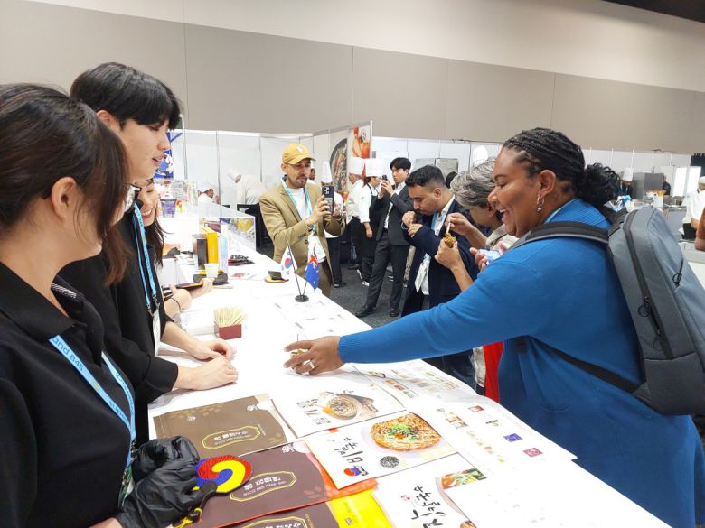 최근 호주 식품시장은 건강과 지속가능성을 중시하는 웰니스 트렌드가 확산되고, 1인 가구 증가로 간편식(HMR)과 소포장 제품 수요가 꾸준히 늘고 있다. 이에 농식품부와 aT는 배 수출통합조직, 지자체 및 농공상기업 등 27개 사와 함께 30개 부스 규모의 통합한국관을 마련했다. 부스에서는 홍삼농축액, 컵떡볶이, 저칼로리 면류, 김치, 배, 음료, 소스류 등 다양한 K-푸드를 선보였다.