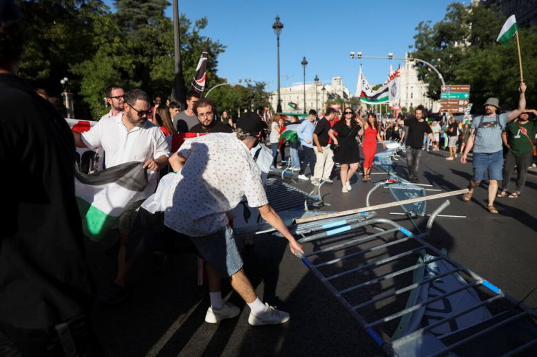 사이클 국제경기인 ‘부엘타 아 에스파냐’의 조직위는 14일 이 대회의 최종 경기가 중단됐다고 확인했다. 이 대회는 이날 마드리드에서 경기를 치를 예정이었으나, 반이스라엘 시위에 나선 시민들이 경기가 열리는 도로를 막아서 경기가 치러지지 못했다.