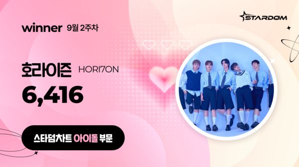 호라이즌은 9월 2주차(집계기간 9월 8일~9월 14일) '스타덤 차트' 아이돌 부문 주간랭킹에서 1위를 차지했다. 9월 1주차까지 2주 연속 1위를 차지한 아홉을 밀어내고 호라이즌이 정상에 올랐다.
