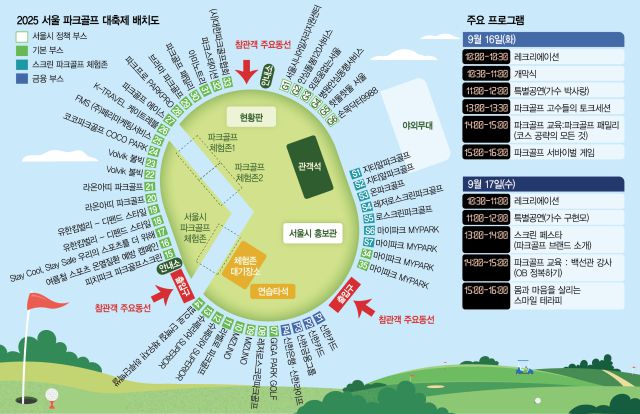 대축제 기간 무대에서는 가수 박사랑·구현모의 트로트 공연, 전문가 교육, ‘스크린 페스타’ ‘파크골프 서바이벌 게임’ 등 다채로운 프로그램이 이어진다.