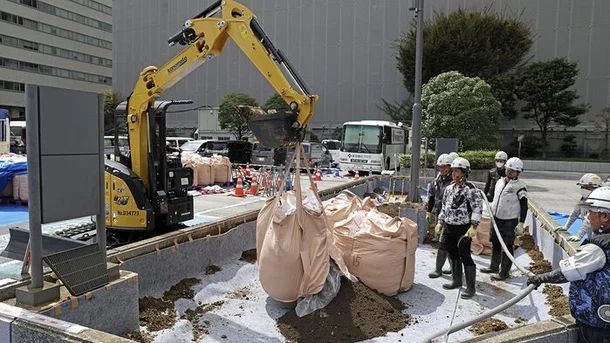 교도통신 보도에 따르면 14일(현지시간) 일본 환경성·경제산업성·부흥청이 자리한 도쿄 가스미가세키 청사 화단에 약 45㎥의 제염토가 반입돼 다져졌다. 경제산업성 건물 주차장 앞 화단에는 55㎝ 깊이까지 오염토를 채우고 비산을 막기 위해 일반 흙을 20㎝ 두께로 덮는 공정이 이어졌다.