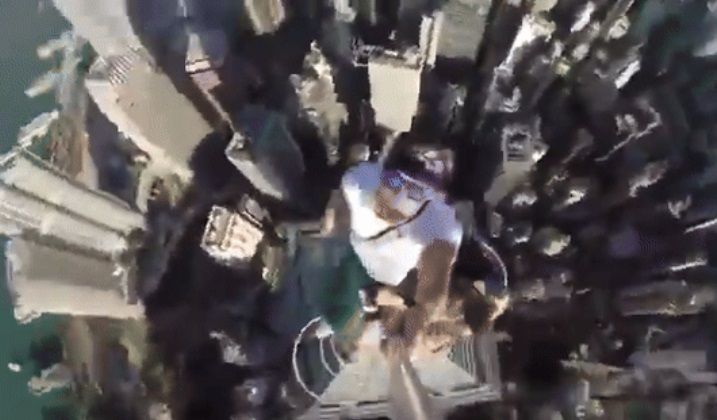 홍콩 센트럴의 마천루에서 한 남성이 셀카봉을 사용해 영상을 찍고 있다. (기사과 직접적 관련없는 자료사진). 뉴시스 |