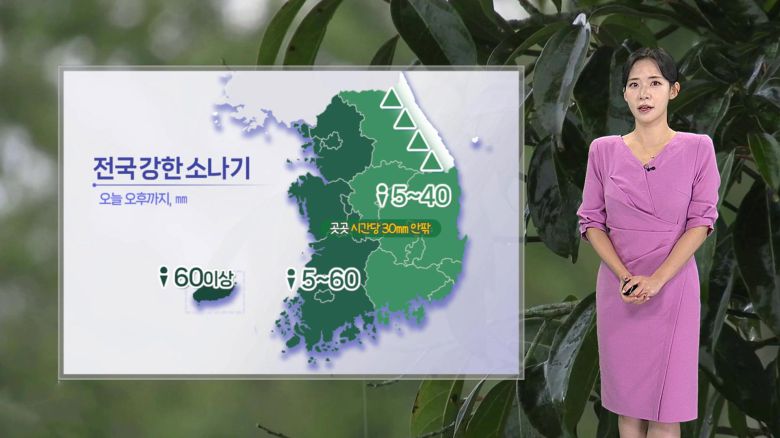 소나기의 양은 적게는 5mm에서 많게는 60mm가 예상되고요.