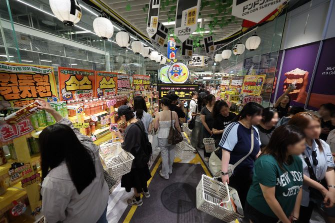 지난 7월 서울 여의도 현대백화점 더현대 서울에서 열린  일본 최대 잡화점 돈키호테 팝업 스토어를 찾은 시민들이 제품 구매를 위해 줄을 서 있다. (사진=연합뉴스)