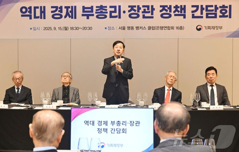 (서울=뉴스1) = 구윤철 경제부총리 겸 기획재정부 장관이 15일 저녁 서울 중구 뱅커스클럽에서 열린 '역대 경제부총리·장관 정책 간담회'에 참석, 인사말을 하고 있다. (기획재정부 제공) 2025.9.15/뉴스1pjh2035@news1.krCopyright ⓒ 뉴스1. All rights reserved. 무단 전재 및 재배포, AI학습 이용 금지.이 기사의 카테고리는 언론사의 분류를 따릅니다.0공유하기