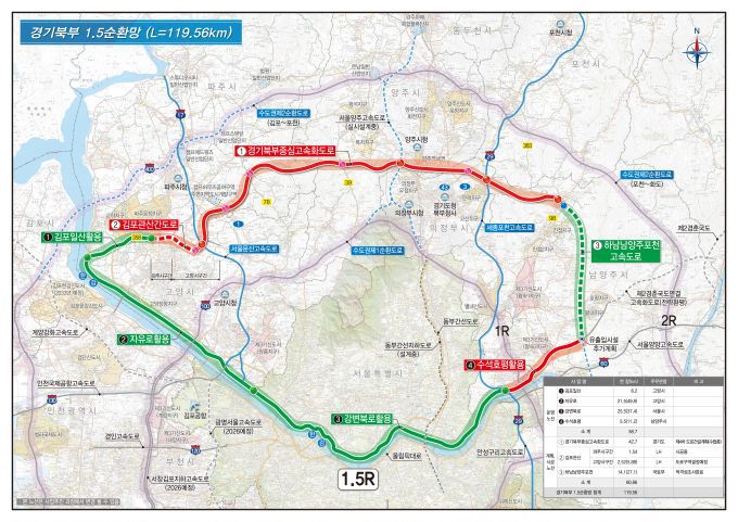 경기북부 중심고속화도로는 수도권 제1·2순환 고속도로 사이 동서축 고속화도로를 신설하는 내용이다. 고양시, 파주시, 양주시, 의정부시, 남양주시 등 경기북부 5개 시를 연결한다. 사업 규모는 총연장 42.7㎞, 총사업비 2조 506억 원 규모의 도민참여형 민자사업 형태로 2034년 개통 목표로 사업을 추진한다.