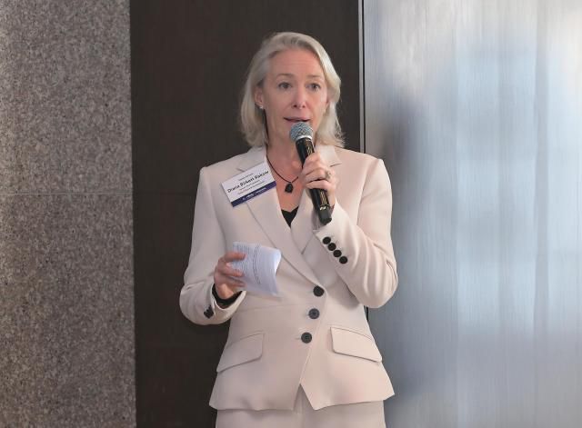 15일 서울 중구에 위치한 더 플라자 호텔에서 개최된 하와이안항공 인천-시애틀 직항 노선 취항 기념 기자간담회에서 다이애나 벌켓 라코우 알래스카 에어 그룹 대외협력 및 지속가능경영 수석 부사장 겸 하와이안항공 신임 CEO 예정자가 환영사를 하고 있다. [사진=알래스카 에어 그룹] |