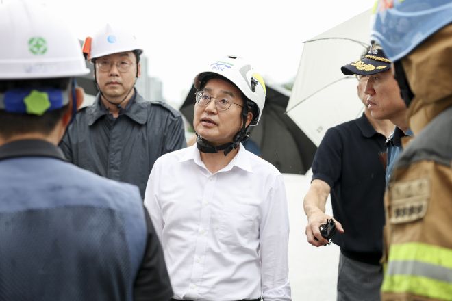 김 지사는 16일 오후 사고가 발생한 안양시 만안구 안양동 건설 현장을 찾아 “일단 복구가 우선이니까 작업을 중지하고 오늘 자정까지 복구를 진행하고, 추가 피해가 없도록 재발 방지를 신경 쓰라”고 당부했다.
