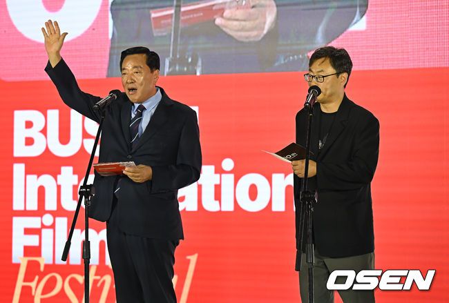 최진봉 부산 중구청장과 정한석 부산국제영화제 집행위원장이 전야제 개막 선언을 하고 있다. 2025.09.16 / foto0307@osen.co.kr