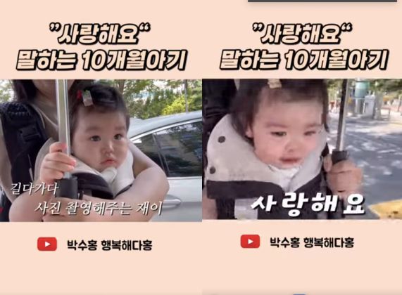 지난 15일 채널 ‘박수홍 행복해다홍’에는 ‘사랑해요 말하는 10개월 아기’라는 설명이 적힌 짧은 영상이 게재됐다.