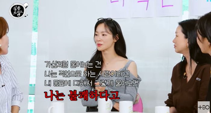 장도연이 "둘이 뭐 있는거 아니냐 이런 거 많이 안 물어보냐"라고 묻자, 전여빈은 "처음에는 많이 물어봤는데 제 성격을 아니까 괜히 물어봤다 한소리 듣는거 아니까 이제는 안 물어본다"라고 말했다.