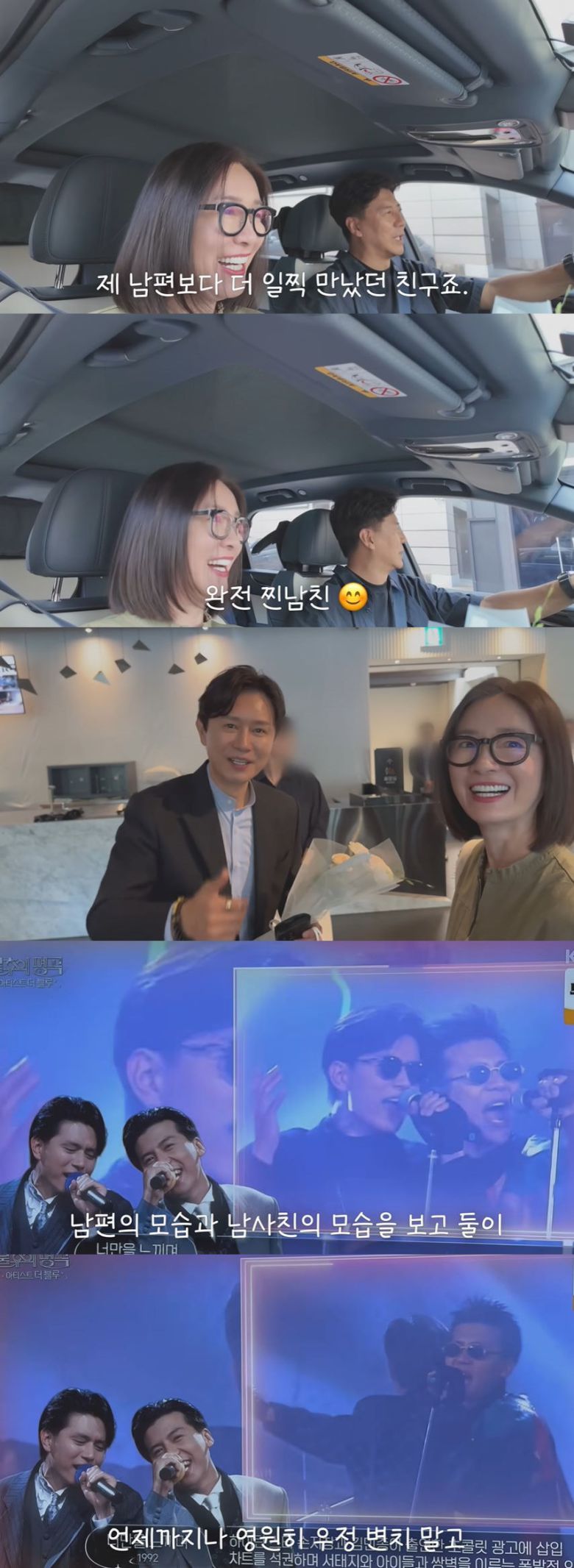오연수는 자막을 통해 "고등학교 때 같은 반이었던 친구다. 제 남편보다 더 일찍 만났던 친구다. 완전 '찐남친'"이라며 김민종과의 오랜 인연에 대해 털어놨다.