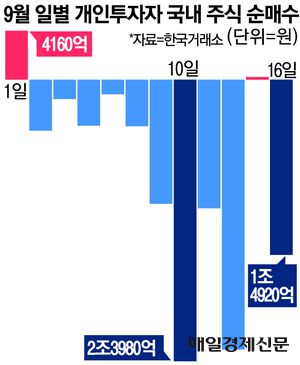 반면 국내 투자자들 역시 국장에서 돈을 빼고 있다. 개인은 이날 1조4920억원을 순매도하며 이달 12거래일 중 10거래일간 매도 우위를 나타냈다.