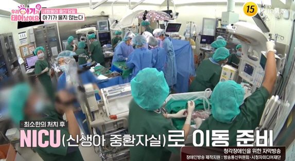 산모에게 전신 마취를 하고 분만 수술이 진행됐다. 그런데 가장 먼저 나온 첫째 태이가 울지 않았다. 호흡에 문제가 있다는 신호였다. 결국 기관내삽관을 해서 인공호흡을 시켜주었다. 이후 신생아 중환자실로 빠르게 이동했다.