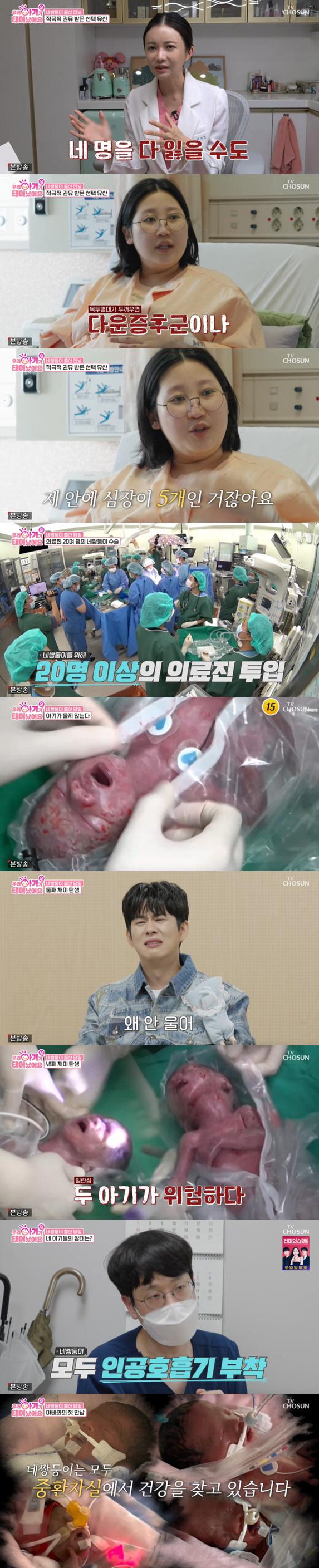 16일 방송된 TV CHOSUN '우리 아기가 또 태어났어요'에서는 '선택적 유산'을 권유받기까지 했던 네쌍둥이 산모의 역대급 스케일 출산 현장이 공개됐다.