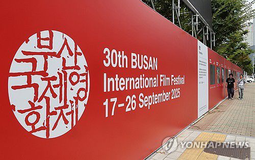 부산국제영화제 이틀 앞으로(부산=연합뉴스) 강선배 기자 = 제30회 부산국제영화제(BIFF) 개막을 이틀 앞둔 15일 부산 해운대구 영화의전당 앞에 설치된 포스터 앞으로 시민이 지나가고 있다. 2025.9.15 sbkang@yna.co.kr