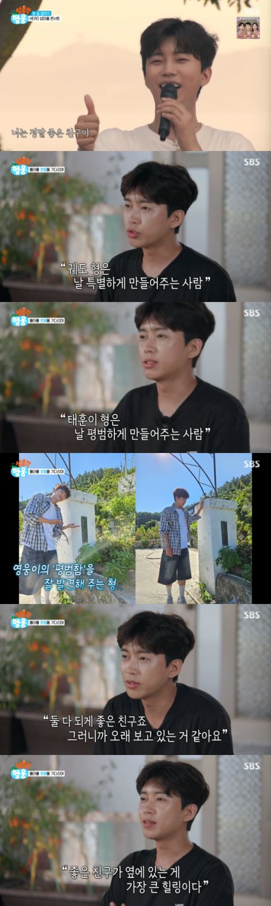 또 임영웅은 며칠간 섬생활을 함께 한 절친 궤도와 임태훈에 대해 "궤도 형은 항상 나를 특별하게 만들어주는 형이고, 태훈이 형은 나를 평범하게 만드는 사람이다. 둘 다 좋은 친구다. 그래서 오래 보는 것 같다. 좋은 친구가 옆에 있는게 가장 힐링"이라면서 고마운 마음을 전했다.