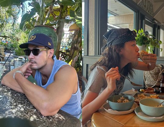 사진 속 그는 하와이의 한 카페에서 건강미 넘치는 매력을 발산했다. 또 다른 사진에서는 하와이의 한 식당에서 빨간 모자와 보라색 긴팔 티셔츠를 입은 편안한 차림으로 훈훈한 매력을 드러냈다.