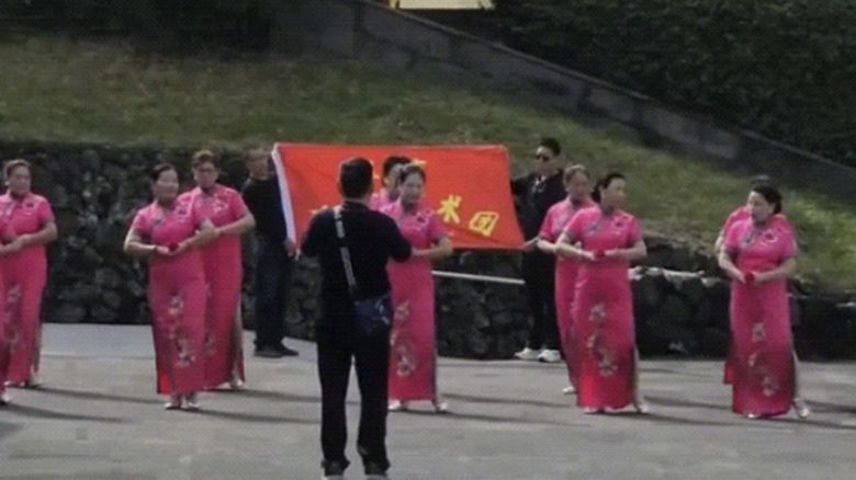 공개된 영상에는 치파오 차림의 여성 10여 명이 성산일출봉 동암사를 배경으로 두 줄로 나란히 서서 중국 음악에 맞춰 단체로 춤을 추는 모습이 담겼다.