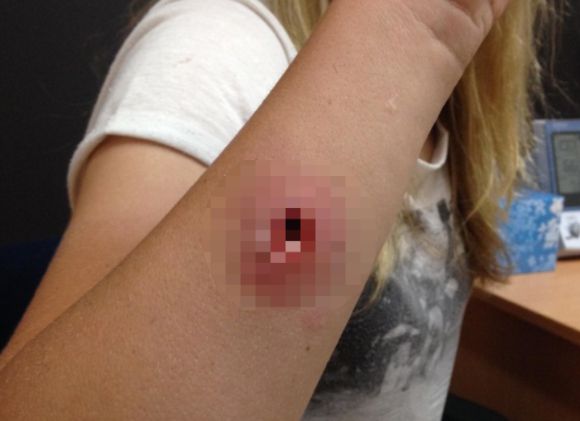 일본 오사카에서 열리고 있는 '2025 오사카·간사이 엑스포'가 맹독성 외래종 거미 출현으로 비상이다. 사진은 붉은등과부거미에 물린 상처 부위로, 오사카 엑스포와는 무관. [사진=yanchepnews] |