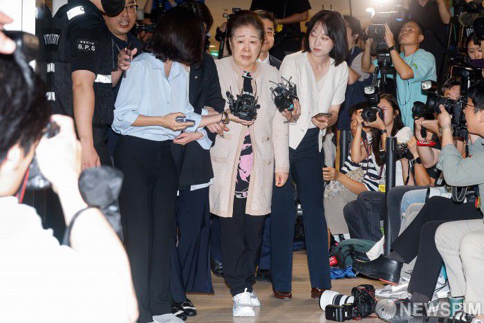 [서울=뉴스핌] 류기찬 기자 = 권성동 국민의힘 의원에게 정치자금을 제공한 혐의를 받는 한학자 통일교 총재가 17일 오전 서울 종로구 KT광화문빌딩 웨스트에 마련된 김건희 특검 사무실로 출석하고 있다. 2025.09.17 ryuchan0925@newspim.com