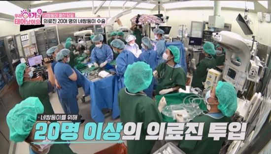 산모는 남편과 친정엄마의 응원을 받으며 혼자 수술실로 향했다. 수술실에서는 일란성 쌍둥이인 셋째와 넷째 모두 울음소리 없이 응급처치를 받는 급박한 상황이 펼쳐졌다. 두 아이 모두 기관내삽관으로 응급처치 후 신생아 중환자실로 급히 이동하며 보는 이들의 마음을 졸였다.