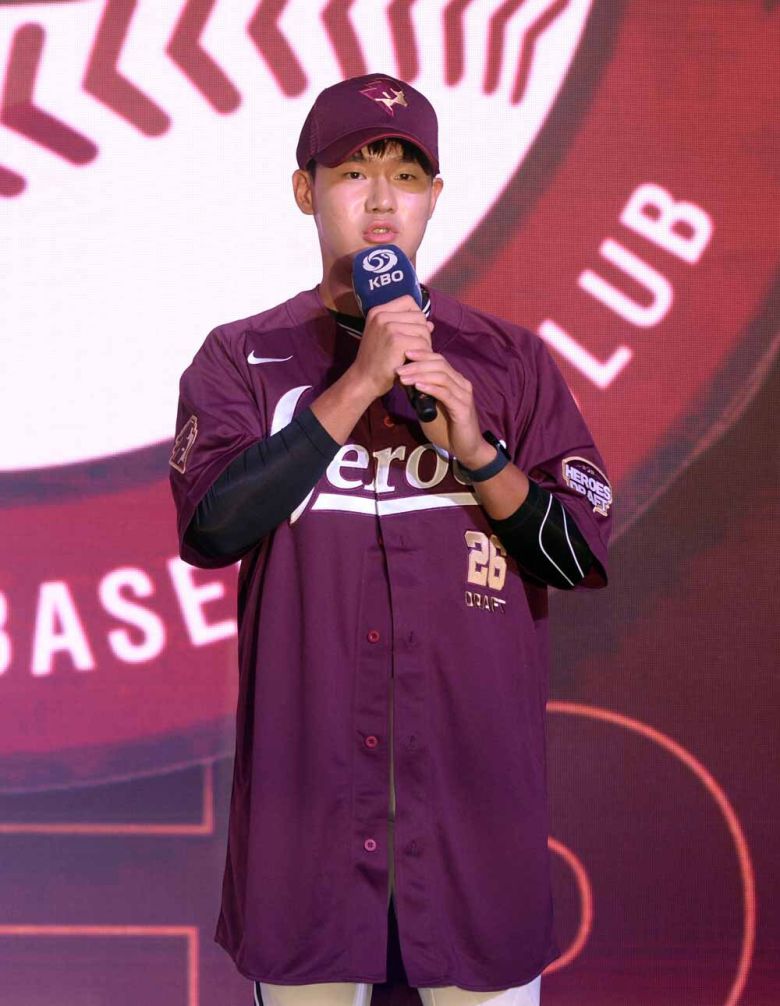 프로야구 키움에 지명된 박한결이 17일 서울 송파구 롯데호텔 월드 크리스탈볼룸에서 열린 2026 KBO 리그 신인드래프트에서 소감을 발표하고 있다. 사진=김두홍 기자 kimdh@sportsworldi.com