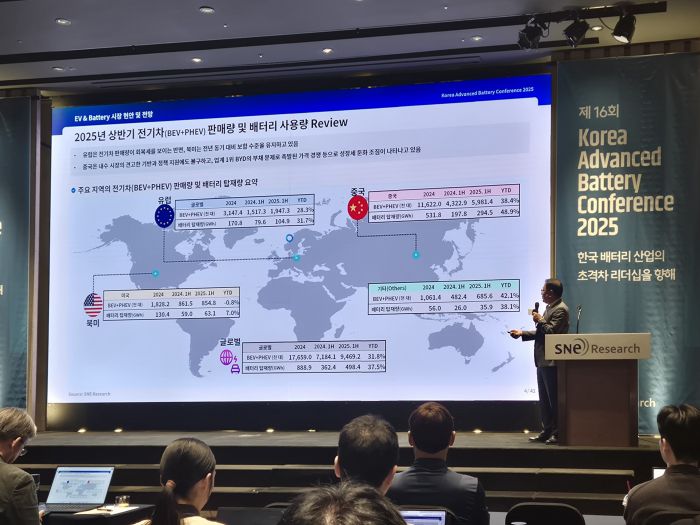 17일 서울 한국과학기술회관에서 열린 KABC 2025 컨퍼런스에서 김광주 SNE리서치 대표는 "고용량 배터리 채택 비중이 늘어나면서 전기차가 성장할수록 배터리 수요는 더 빠른 속도로 증가하고 있다"며 "올해 전기차 배터리 탑재량이 1000GWh를 넘어설 것"이라고 전망했다.
