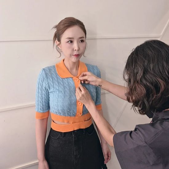 17일 신지는 자신의 계정에 여러 장의 사진을 업로드했다. 옷매무새를 다듬는 스타일리스트의 모습과 옷을 차려입은 신지의 모습이 눈길을 끈다.